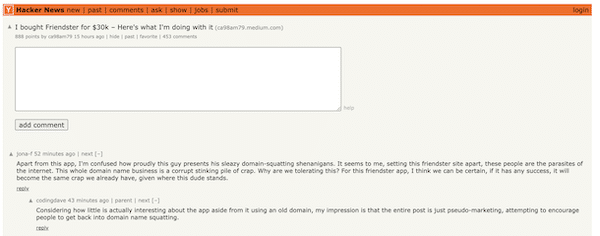 Over the weekend, Mike Carson wrote about his Friendster.com acquisition in a blog post that was widely shared on Hacker News. At one point, it was the top post of the day garnering hundreds of comments. The comment that rose to the top had little to do with Friendster and a great deal to do with Mike’s background in the domain investment space: